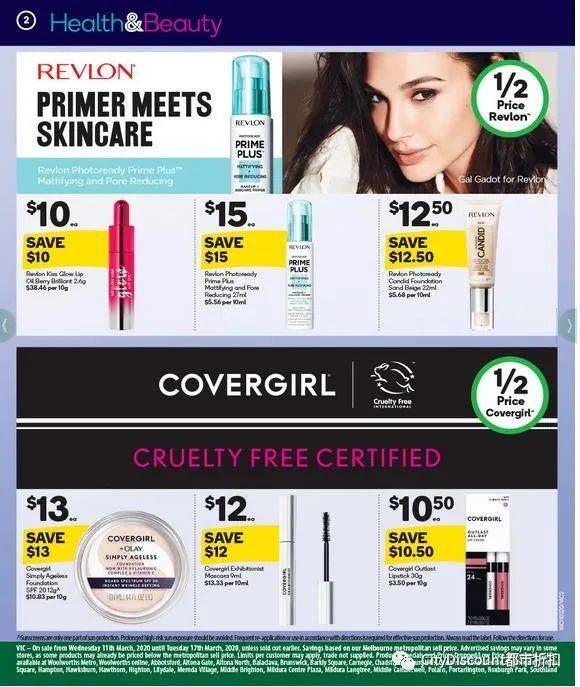 指定品牌美妆品,劲霸电池16pk,1L装Palmolive洗手液,指定高露洁产品,Dove沐浴液,Morning Fresh,指定洗衣粉/洗衣液等半价;