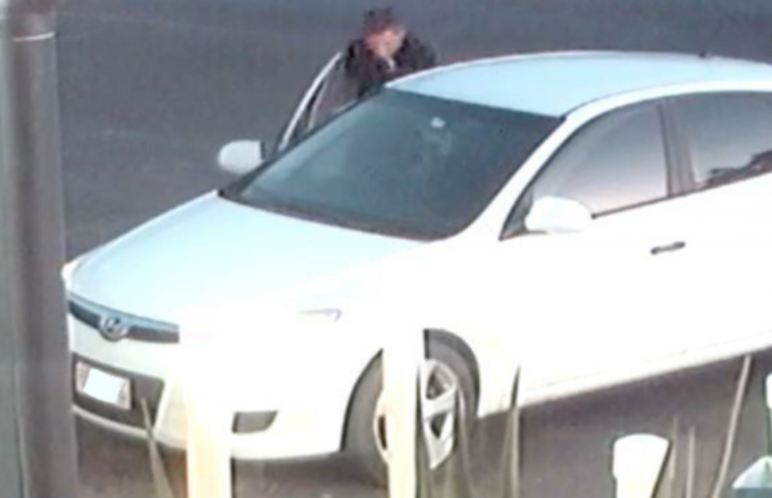 从杂货店门口上方的摄像头拍摄到的片段显示,一名站在杂货店门前穿着深色上衣的男子登上没有锁门的车,进入驾驶座,企图倒车驶离现场。