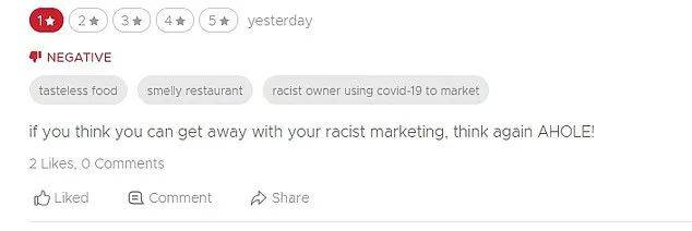 “这太恶心了!社交媒体上一部分人表现出来的态度太可怕了!这个所谓的“Covid-19”菜单带有非常明显的种族主义色彩,这样的用词太不恰当了!真令人失望!”另一个人写道。