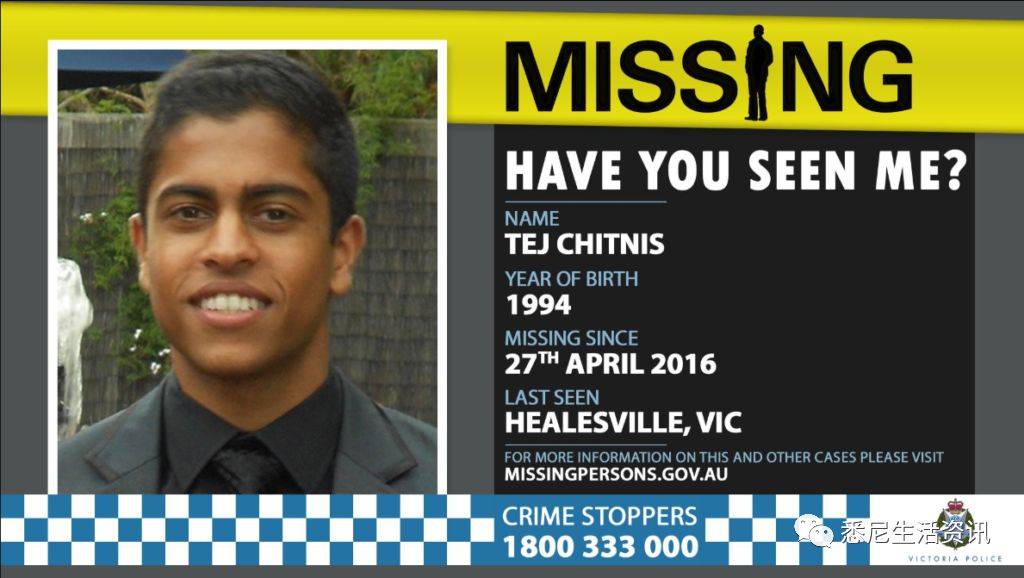 其中,有名小伙子叫Tej Chitnis,他已经在墨尔本失踪了三年多了。