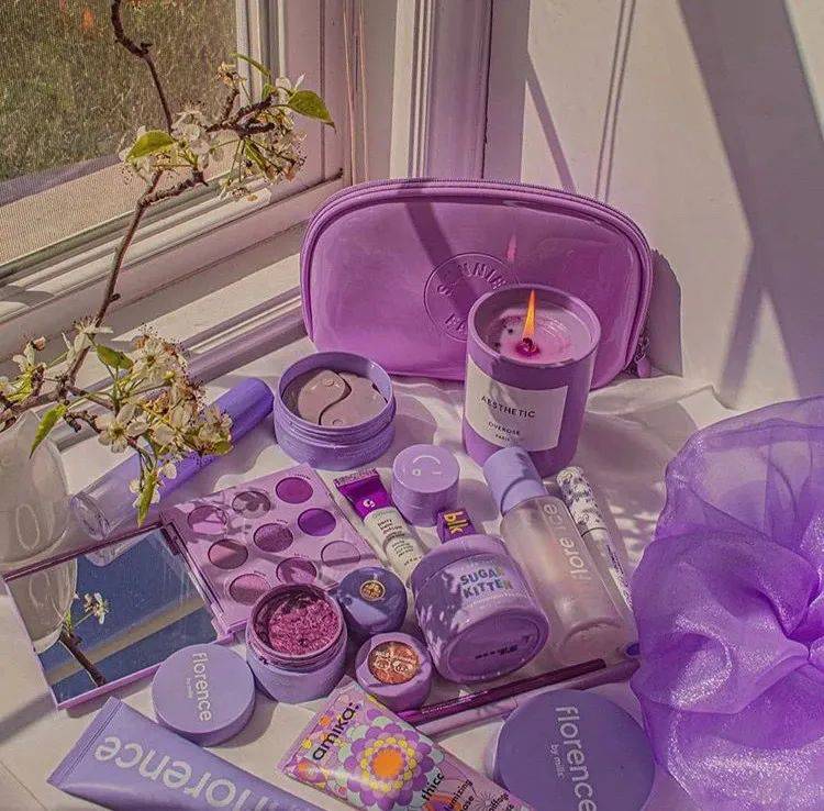 腮红表面有一朵大大的鸢尾花,而土豆泥眼影和新款唇釉都像鸢尾花瓣挤出来的汁液,粉紫搭配,王炸!