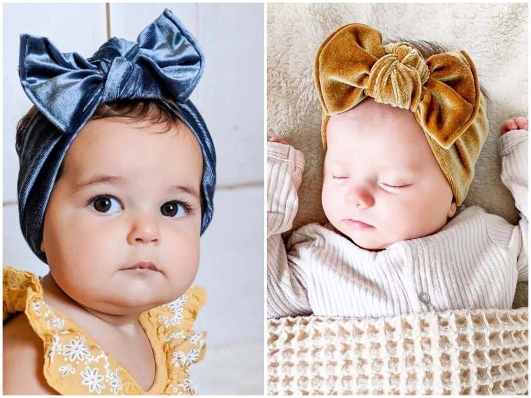 发箍其实从孩子婴幼儿时期就可以戴了,只不过这个时期戴的更多的可能是头巾款,类似于胎帽。
