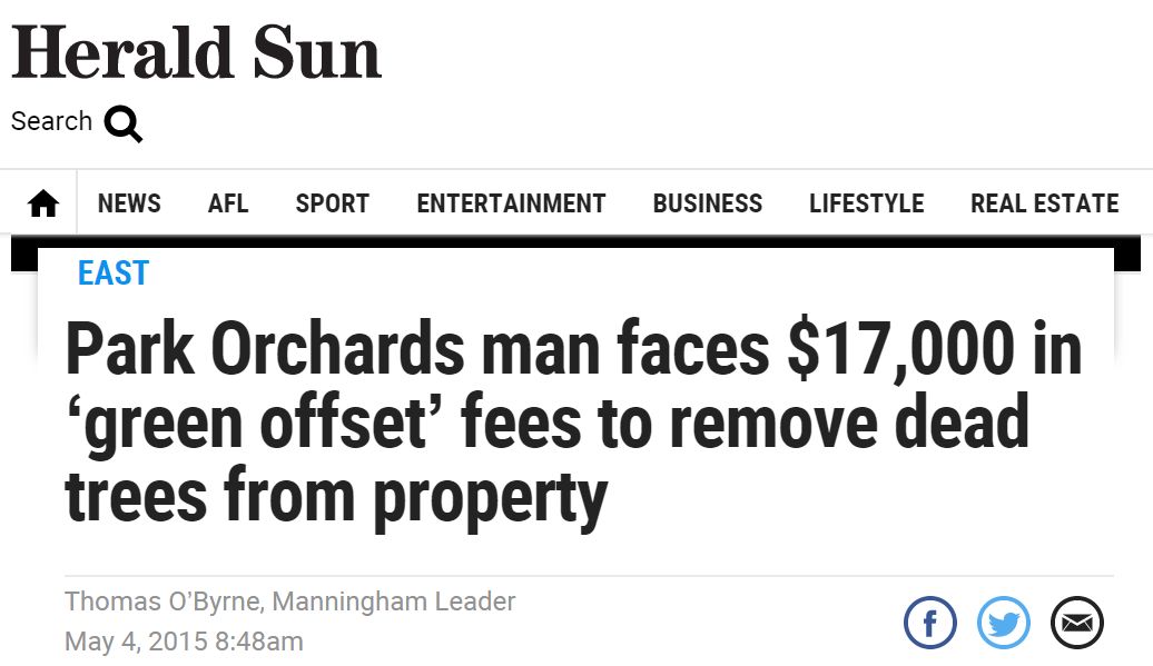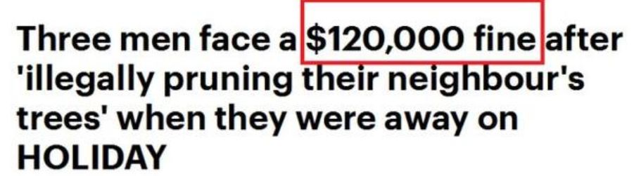 如果是大树(直径50cm以上的)就需要使用专业人员的大型油锯(petrol chainsaw)了。一般的报价是800-2500澳元砍一棵树。这个报价和树的大小,位置都有关系,一般越高的树越贵。