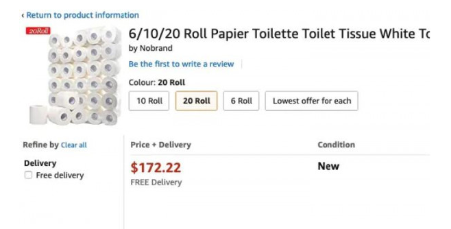 Choice的Erin Turner表示,在过去一个月,eBay、Facebook及Amazon等平台上的许多产品都出现了大幅涨价的现象,包括48澳元的一次性口罩、269澳元的洗洁精以及200澳元生锈的哑铃。