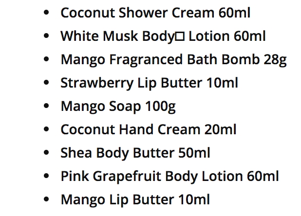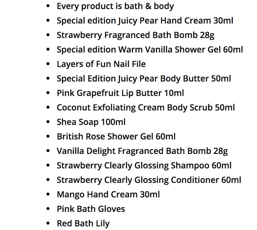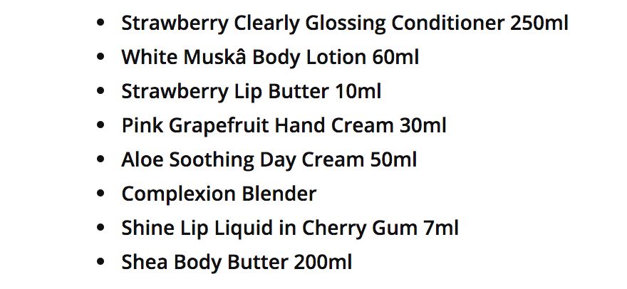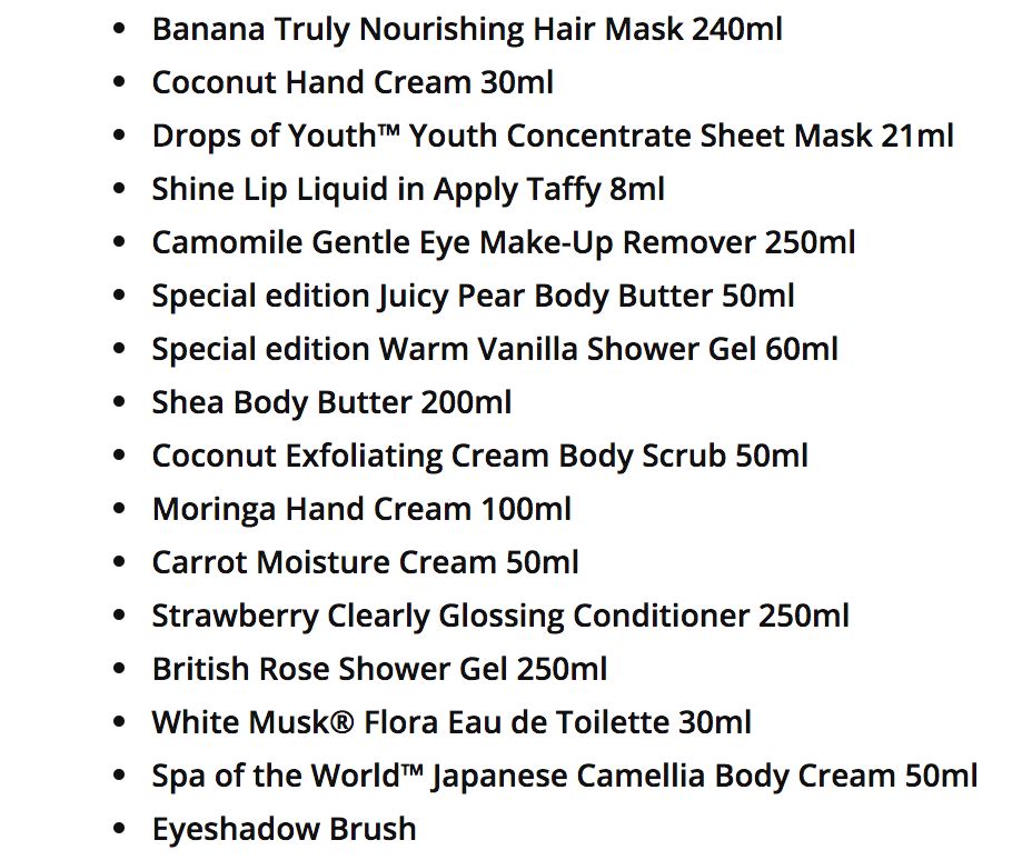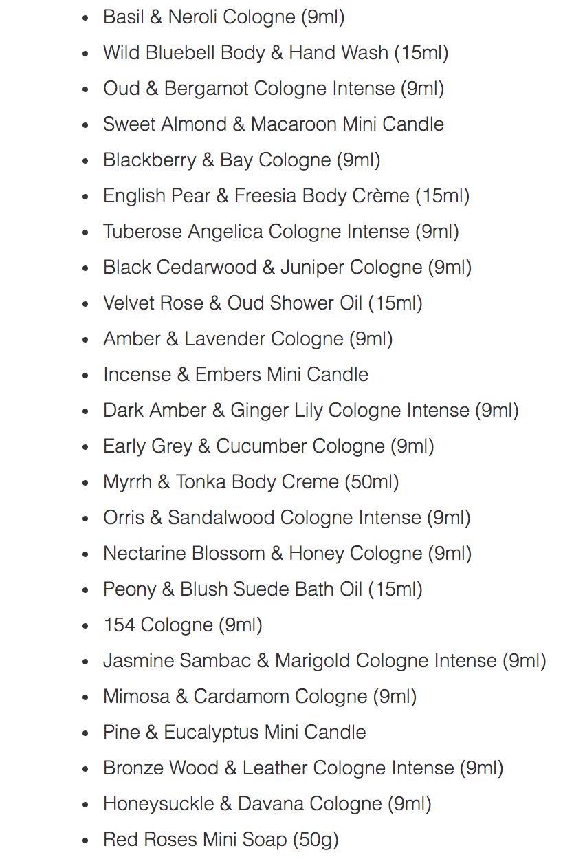 包括护肤畅销品,香熏沐浴露和美体,彩妆等
