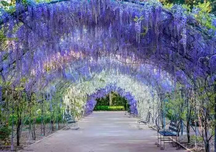 Adelaide Botanic Garden的拱形门廊,每每到了春天的时候,便成了最美的风景,但它其实并不属于蓝花楹,而是垂坠状的紫藤花,但它同样美得令人屏息。淡紫色的花朵簇拥着,随风摇曳生姿。满眼尽是紫,浓得一塌糊涂,在门廊前拍下的照片,就是春天的代名词。