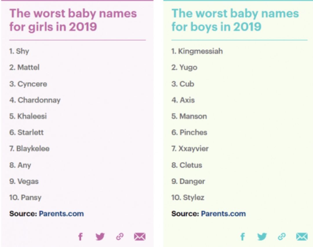 2019新生儿最糟糕的英文名(图片来源:《每日邮报》)