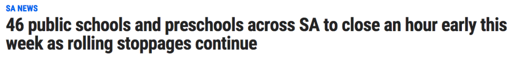 由于教师们与南澳州政府陷入一场行业斗争,并继续轮流停课,本周初的这几天,南澳近50所学校和幼儿园将停课一小时。看看你的学校是否受到影响……