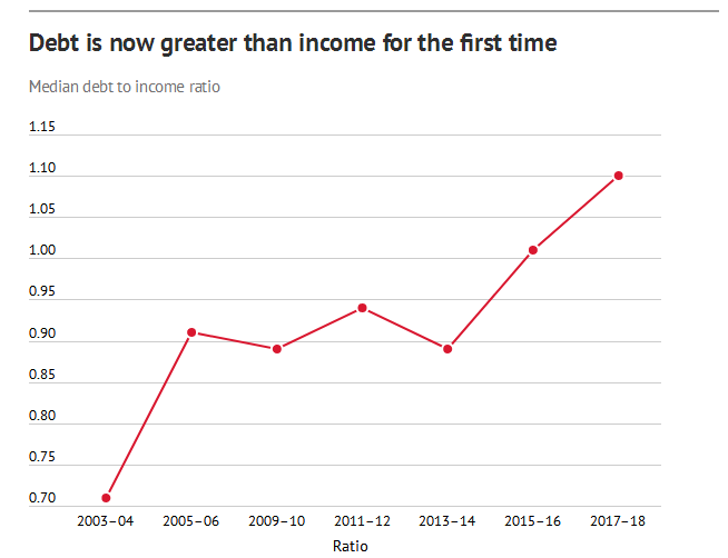 到2017-2018年度,澳洲人的债务收入比中位数涨到了1.1