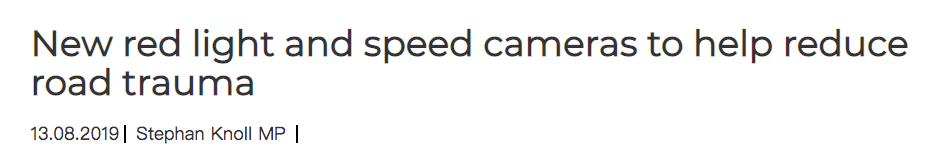南澳州交通、基础设施和地方政府部长斯蒂芬•诺尔(Stephan Knoll)表示:“州政府履行了对阿德莱德各地的测速摄像头进行审计的承诺,以确保它们安装在那里不只是为了增加收入。”