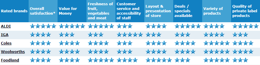 在本年度Canstar Blue评级调查中,Aldi是唯一一家在整体满意度指标上评为五星的连锁超市。