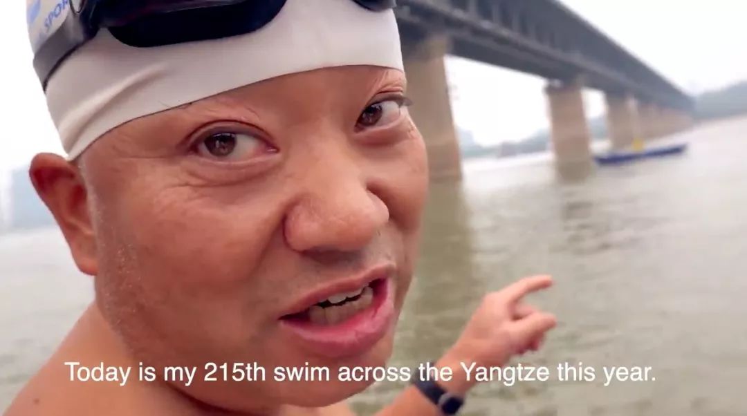 队伍里有60多岁的大爷,不过身体看起来相当健壮。其中一位表示,这次已经是他今年第215次横渡长江,每次大概游39分钟。