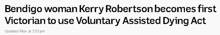 Kerry Robertson,这位被癌症折磨了近10年的女性,在安乐死法案生效后,自己要求,结束痛苦不堪的生命。