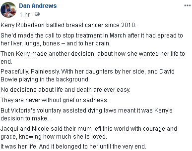 但是Kerry Robertson,以及她的家人们,成为了安乐死法合法性的最好证明。