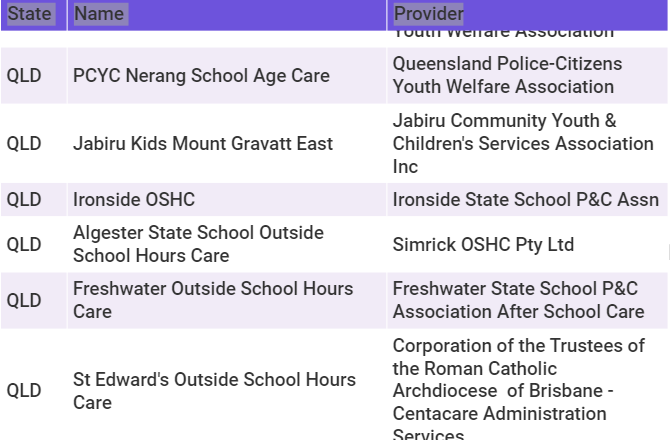 比如从2015年10月起,澳大利亚营地在 Park Lake State School,Coomera Spring State School,Emmanuel College,Tallebudgera State School,Tamborine Mountain State School,Varsity College和Currumbin State School等黄金海岸地区的服务面临48项指控,其中包括人员不足等问题。