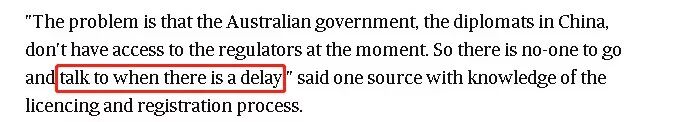 不是澳洲不批复,是澳洲找不到中国哪里对接;但假如中国没人对接批复,没达到中国监管标准又没法出口。