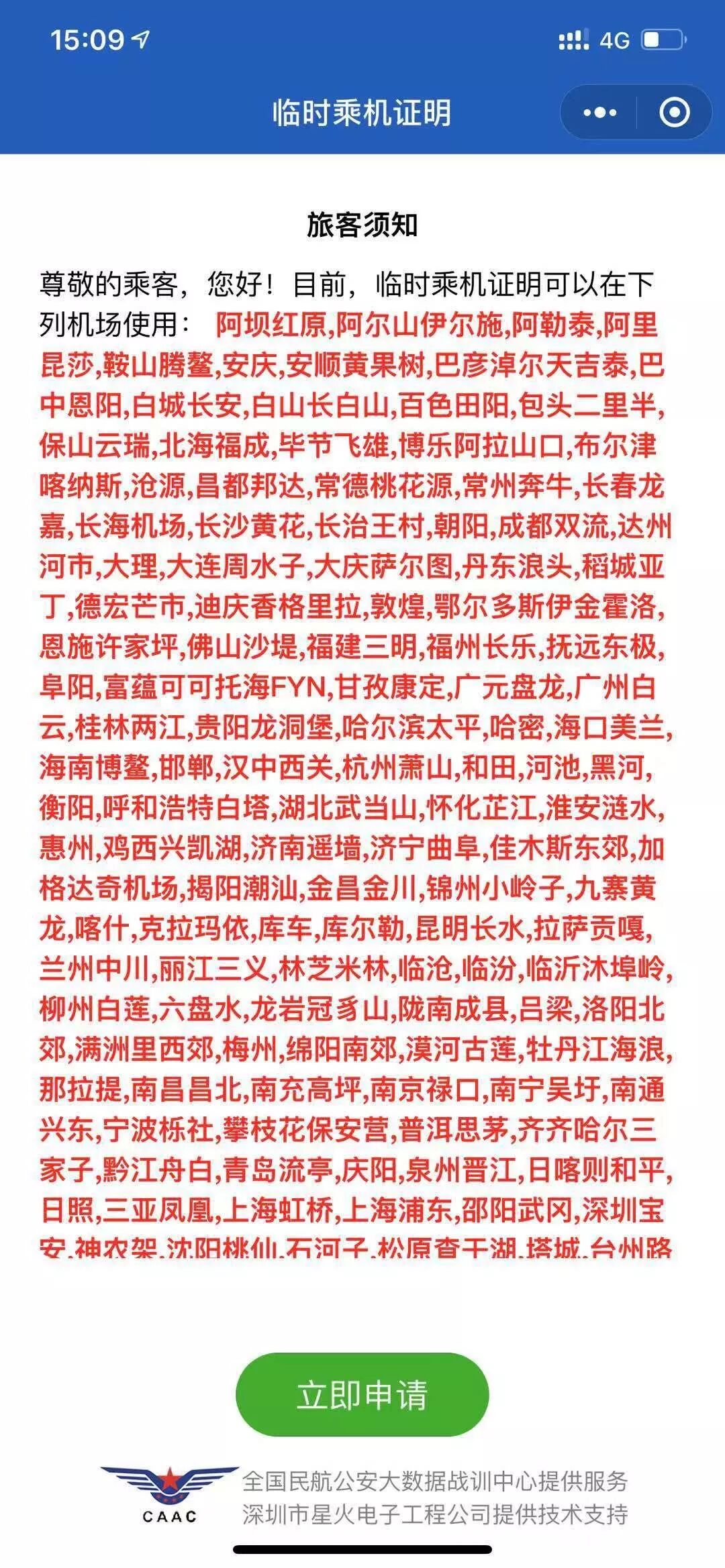 民航局推出的“民航临时乘机证明”小程序上线了,只要60秒,搞定临时乘机证明。