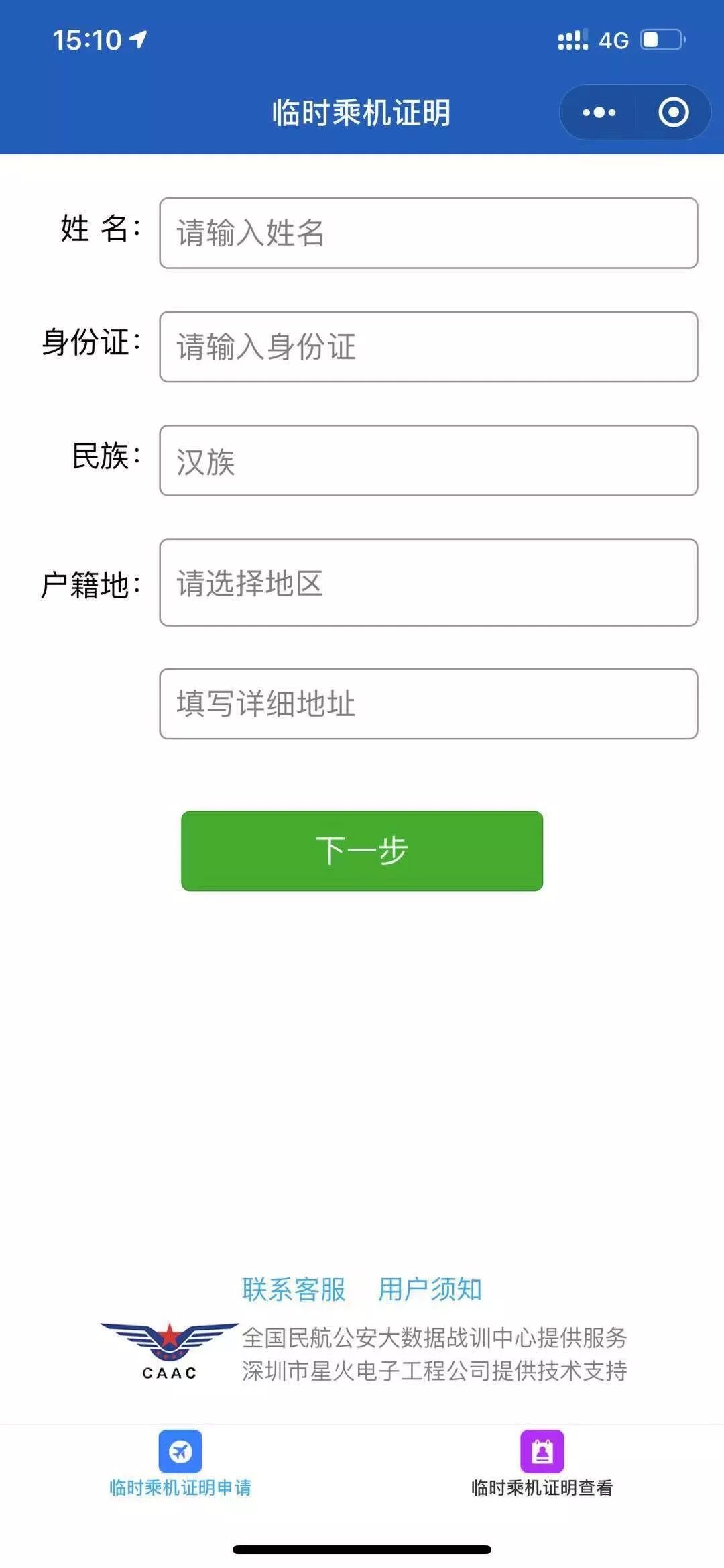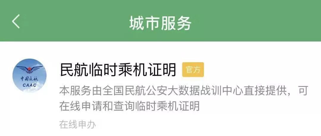 操作路径:微信搜索“民航临时乘机证明”,或通过支付-城市服务-交通出行,打开民航临时乘机证明小程序。