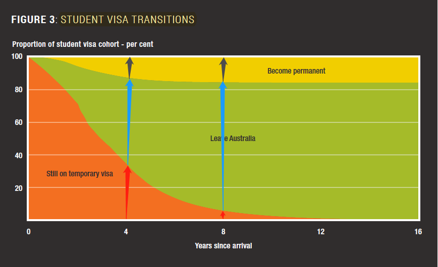 留学生来澳的第四年:大概有60%毕业后就离开,大约30%仍然持有学生签,成功转成PR的大约有10%。