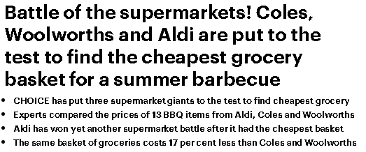 根据Choice的计算,Aldi以$59.57澳元,摘得了烧烤超市比赛省钱桂冠!比价格最贵的超市便宜了整整17%!