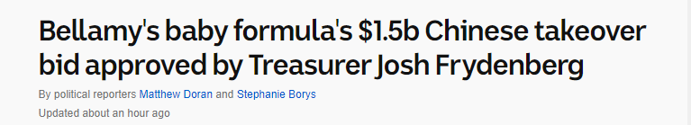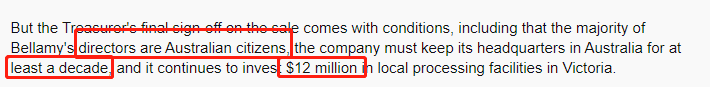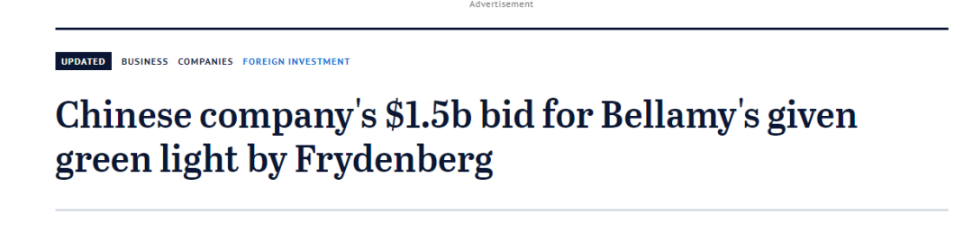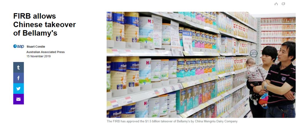 今天(11月15日),外国投资审查委员会(Foreign Investment Review Board)批准了中国蒙牛乳业以15亿澳元收购贝拉米。