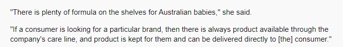 现在澳洲很多超市的婴儿配方奶粉的货架上,还贴有“限购”的标签。