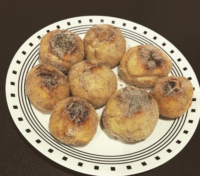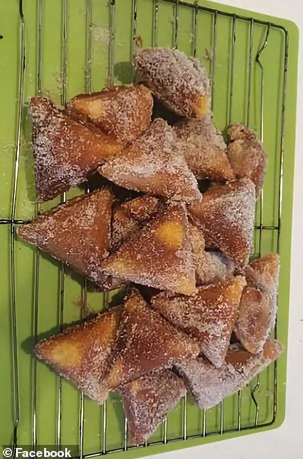 她将香草蛋糕粉,黄油,白糖和肉桂粉做成蛋糕液,通过这个三角饺机器,她在短短6分钟的时间内,就制作了24个三角蛋糕!