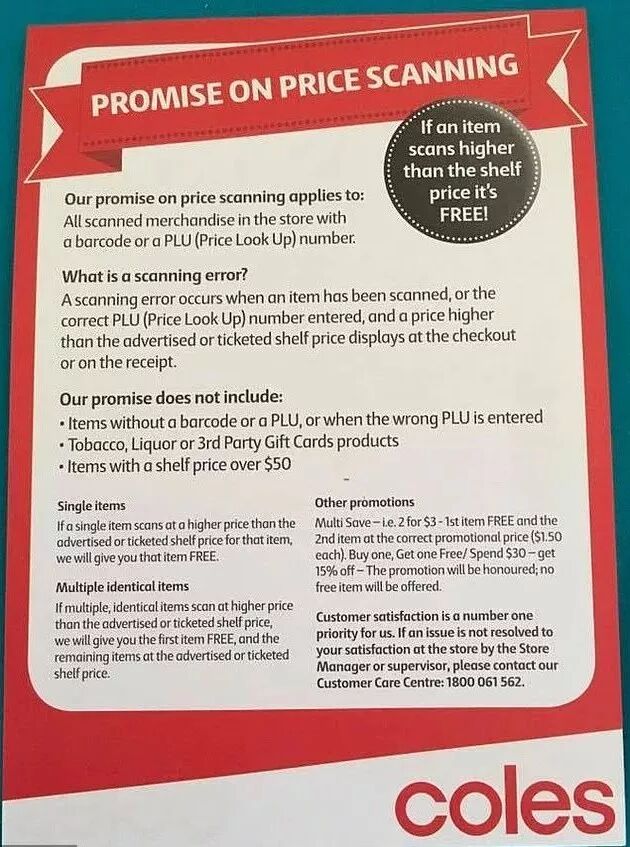 如果是单件商品,Coles和Woolworths会直接给你免单那件商品。