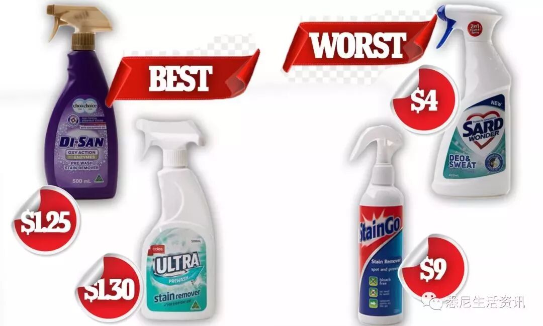 前段时间,澳洲知名消费者组织CHOICE针对澳洲市面上能买到的39款去污剂,做了一个测评。测评对比了不同品牌去污剂对汗液、草/泥、食用油、血渍、番茄、矿物油、巧克力冰淇淋、婴儿食品、化妆品、衣领污垢的清洁力度。