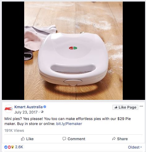Kmart的这款馅饼机,一直以来都在热销榜上,是澳洲家庭的最爱!自从17年7月上市的,便受到了许多澳洲人的关注。光是宣传片就有高达19万的播放,以及2千6的点赞。