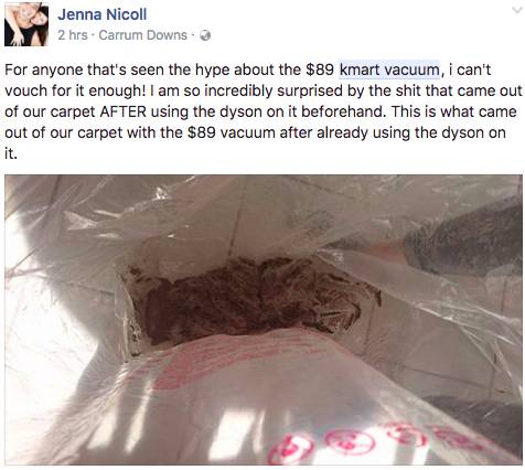 如果你家有地毯,那么吸尘器可以说是必不可少的清洁器。澳洲女子Sara,因为家中吸尘器坏了被送去修理,于是到Kmart买了一个80多刀的吸尘器打算过渡一下。