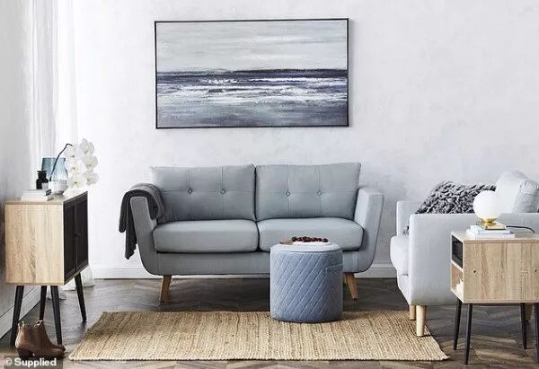 客厅里引人注目的家具包括一个令人惊叹的双座沙发,颜色为鸽灰色,色调最柔和,售价39澳元。
