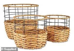 金属编织篮子,价格分别为19澳元、15澳元和12澳元(图片来源:《每日邮报》)