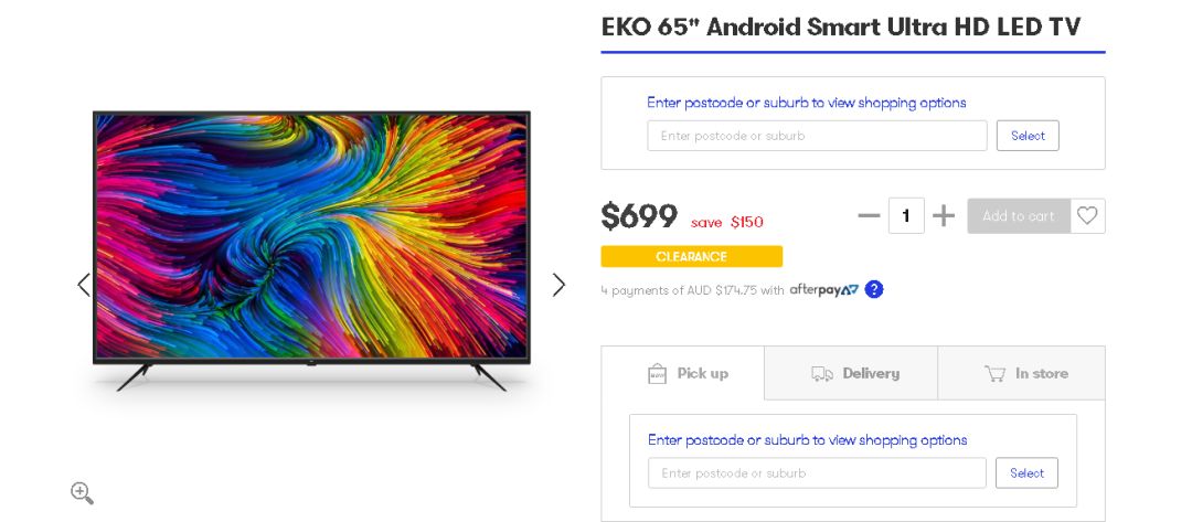 电视机也打折了! $699澳币可以买一台65英寸的电视,感觉大赚了!一省就是$150刀!