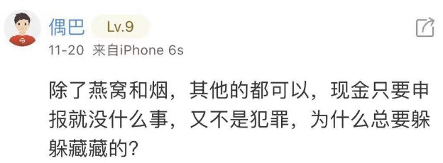 而且不少网友表示,除了燕窝和烟,其他申报就没事,不需要躲躲藏藏的啊。