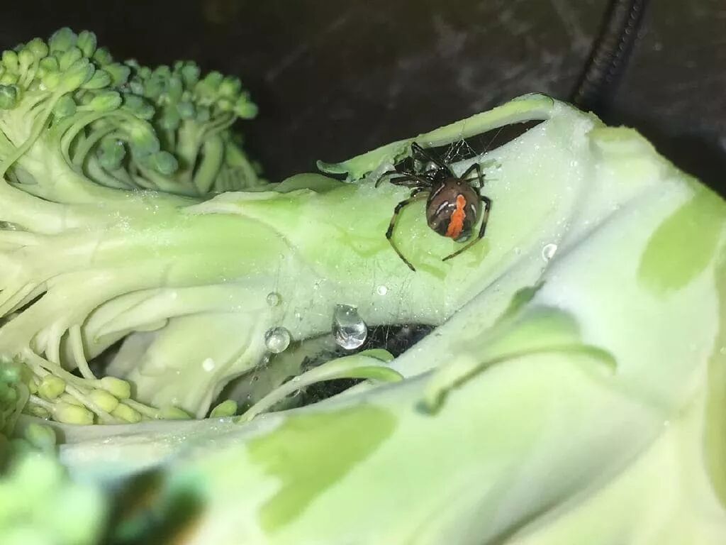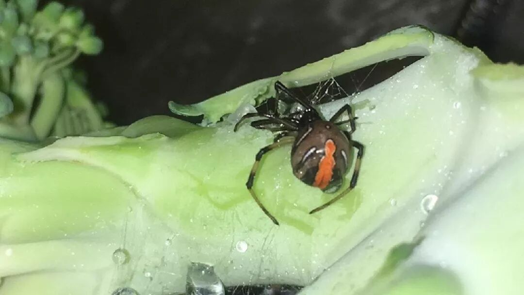 在购买的西兰花中发现了有毒红背蜘蛛。