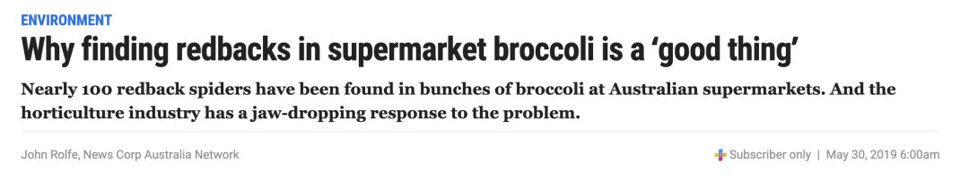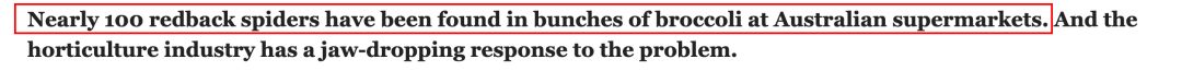 最近以来,在澳洲超市的西兰花中,发现了近100只红背蜘蛛!