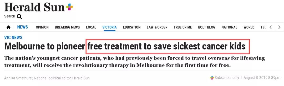 目前,墨尔本的皇家儿童医院和Peter McCallum癌症中心将给年幼的患者提供免费免疫治疗。