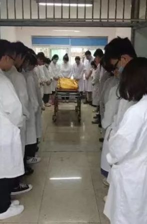 “遗体雇佣长途殡仪车,送长沙捐赠湘雅医学院。”