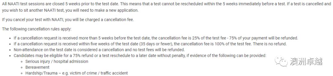 2. 如果CCL退考申请在距离考试日期5周之外提交,退考手续费相当于25%的考试费用,即25%×800=200澳元,返还600澳元;