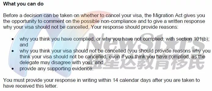 所以,移民局不可以直接取消你的签证,而是必须先发NOICC邀请你回复及解释,然后才能根据你的回复及支持的证据材料裁决你的签证是否被取消。