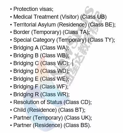 按照移民法s48 及 Reg 2.12,你将被限制递交很多类别的签证,除了以下类别: