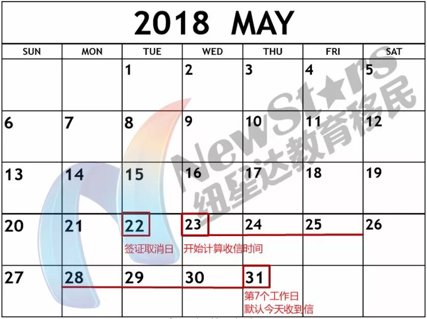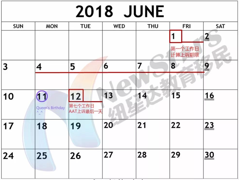 虽然客户是5月22日邮件收到的签证取消信,但是只是一个COPY。实际上,这个信是通过邮寄的方式传达给客户的(sent by registered mail)。所以境内邮寄的情况,移民局默认第7个工作日是客户默认收到签证取消信的时间。上诉期限则是收到签证取消信后的第7个工作日。所以,这个客户的最后上诉截止日期是6月12日。计算方法如下截图: