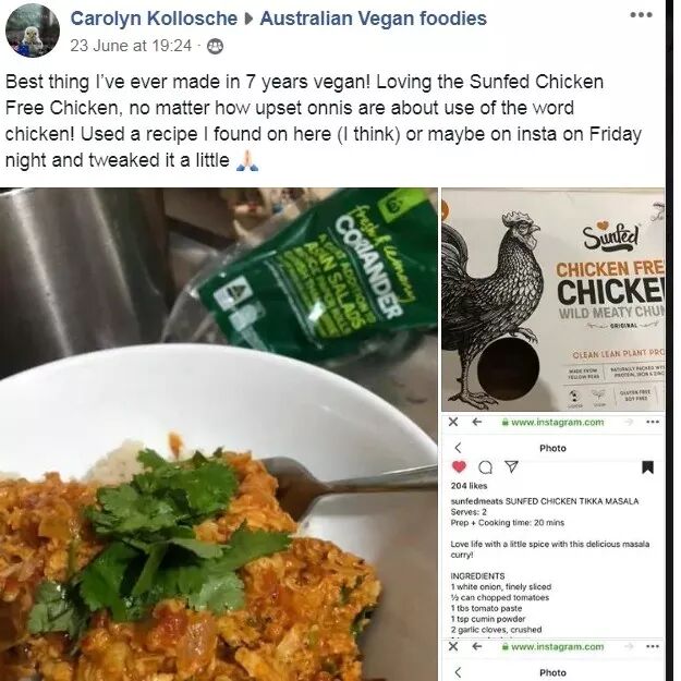“冷冻的拿出来直接煮了。味道太棒了!甚至比鸡肉吃起来更像鸡肉!”