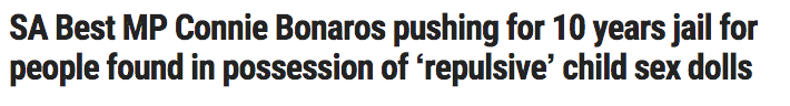 而在南澳,拥有形似儿童的性玩偶可能将被监禁10年!