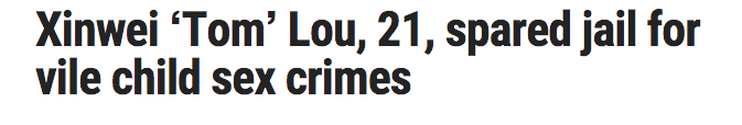 这位英文名为“Tom”的男子(全名Lou Xinwei) 的违法行为是如此堕落,甚至他后来自己也说他厌恶自己。