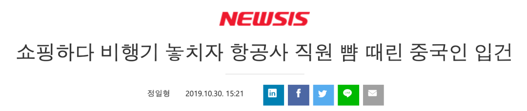 在韩国因殴打航空公司女职员被捕。