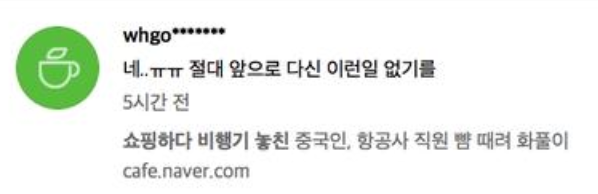 韩国警方表示,“由于B某是航空公司的工作职员,因此A某的行为