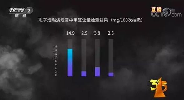 今年的315晚会还曝光了部分电子烟的烟雾中含有甲醛。