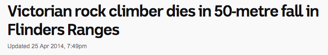 2014年4月,一名维多利亚州的登山者在穆纳里(Moonarie)从悬崖上坠落50米后身亡。